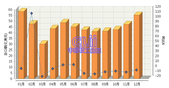 - 2015年1~12月我国家具行业出口累计2016/6/23 10:48:46