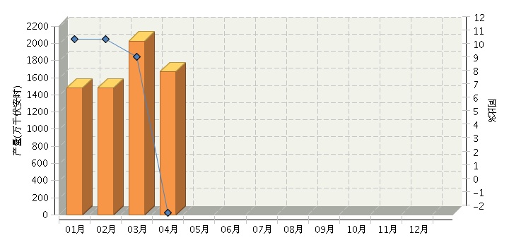 根据国家统计局公布数据,2016年1~4月全国铅酸蓄电池行业累计完成产量同比增长9.67%。其中:4月份完成产量同比增长-1.86%。2016年全国铅酸蓄电池行业月度产量及同比如下图所示。