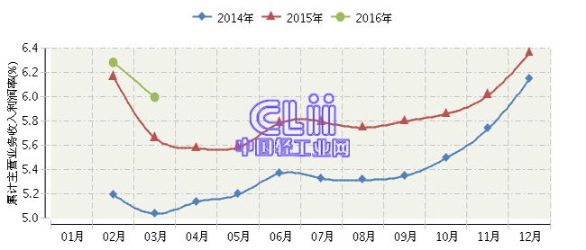 2016年1~3月全国家具行业累计主营业务收入利润率为5.99%