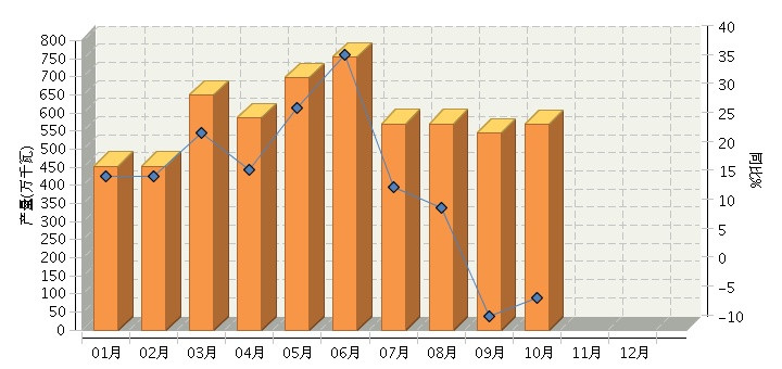 根据国家统计局公布数据,2016年1~10月,全国太阳能电池行业累计完成产量同比增长18.01%。10月份完成产量同比增长-4.44%。2016年全国太阳能电池行业月度产量及同比如下图所示。