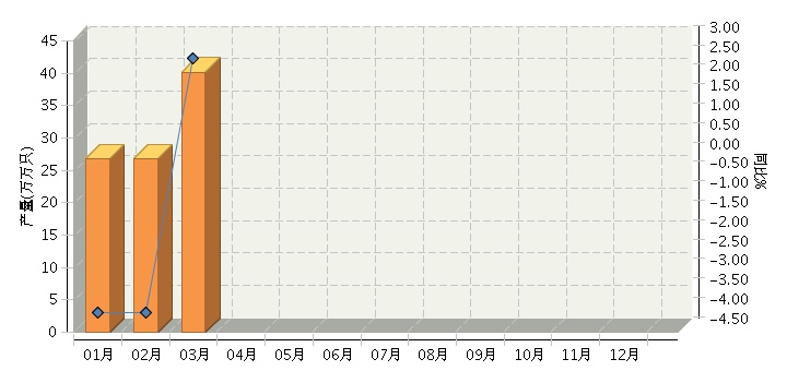 根据国家统计局公布数据,2017年1~3月,全国原电池及原电池组(折R20标准只)行业累计完成产量同比增长-1.54%。其中:3月份完成产量同比增长2.53%。2017年全国原电池及原电池组行业月度产量及同比如下图所示。