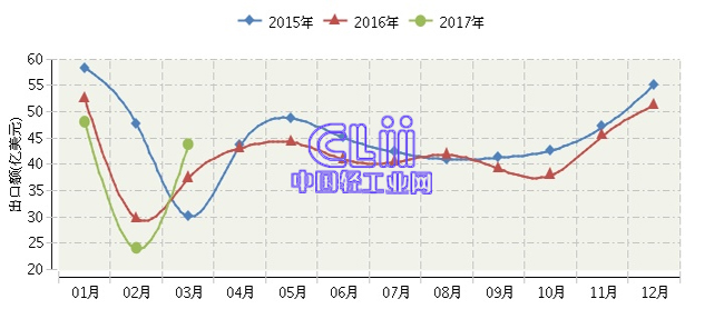 2017年1~3月我国家具行业出口累计同比增长2.17%