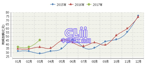 2017年1~3月全国家具行业利润总额累计同比增长12.47%