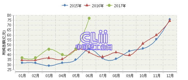 2017年1~6月全国家具行业利润总额累计同比增长17.48%