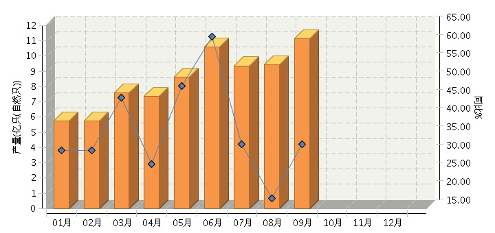 根据国家统计局公布数据,2017年1~9月,全国锂离子电池行业累计完成产量同比增长36.47%。其中:9月份完成产量同比增长32.65%。2017年全国锂离子电池行业月度产量及同比如下图所示。