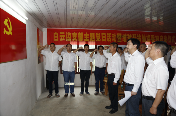 6月27日下午,湖北白云边酒业股份有限公司党委组织在家党委成员、13个基层党支部书记、部分党员代表、入党积极分子、团委负责人共40余人,冒雨赴刘家场镇仙楼香村开展党员主题日暨结对帮扶活动,吹响企业参与精准扶贫、脱贫攻坚战的“集结号”。
