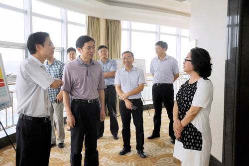 汪长君此行主要是调研夷陵区龙泉镇基层党组织建设和村干部管理工作情况,稻花香集团作为夷陵区非公党建的一面旗帜,是他此次调研的重要一站。在夷陵区委常委、区委办公室主任、龙泉镇委书记李泽刚,稻花香集团党委副书记、工会主席方丽华的陪同下,汪长君登上稻花香包装工业园13楼观光平台,俯瞰龙泉镇全貌,李泽刚向汪长君介绍了稻花香集团助推龙泉新型城镇化建设等方面的情况,方丽华汇报了稻花香集团党委主动适应新常态,努力打造非公党建标杆等方面的创新做法。