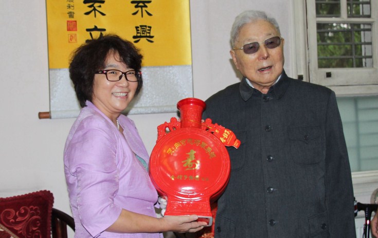 10月8日,时值南京军区原司令员向守志将军百岁华诞来临之际,安徽金种子集团有限公司党委书记、董事长宁中伟带着公司4600名员工的深情祝福,到南京拜望向守志将军。