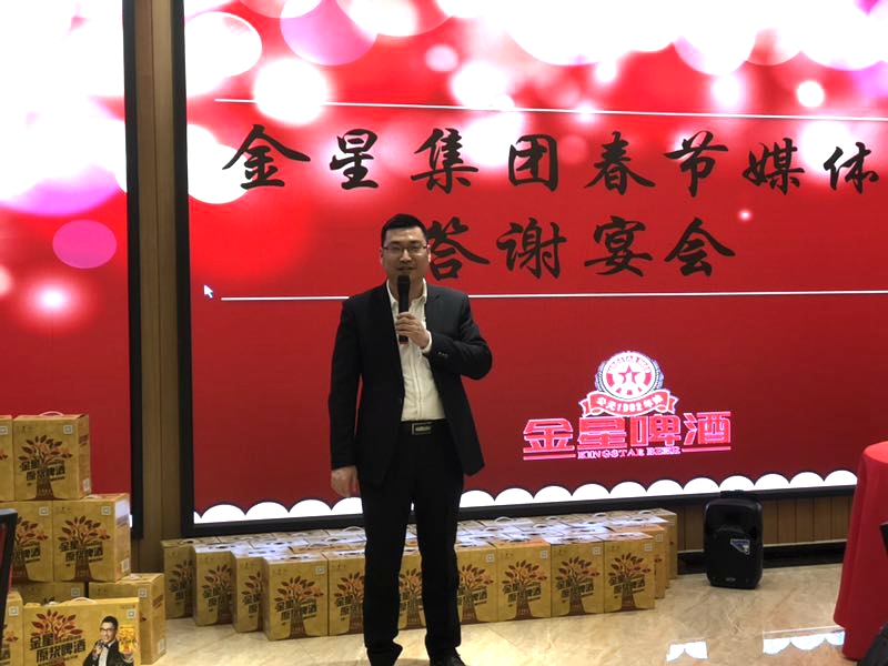 金星集团宣传部部长陈俊首先对媒体朋友们在过去的一年对金星啤酒的支持和关心表示深深的感谢。他说,2018年是金星啤酒专注啤酒行业的第36年,在这期间,金星推出了一代又一代的产品,铸就了一系列让消费者津津乐道的精品啤酒,金星原浆作为金星啤酒近两年的主打产品,更是凭借高颜值、最新鲜、好口感等特点,一经推出就好评如潮。