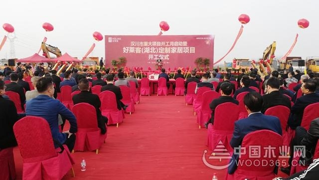 3月14日, “湖北好莱客创意家居有限公司汉川项目奠基仪式”在好莱客(湖北)定制家居工业 项目建设现场隆重举行。孝感市委书记潘启胜及汉川市领导李先乔、黄建军等全体“四大家”领导出席奠基仪式,好莱客董事长沈汉标携好莱客高管、经销商代表、供应商代表及各界媒体朋友出席了此次奠基仪式。至此,好莱客(湖北)定制家居工业4.0制造基地正式动工。