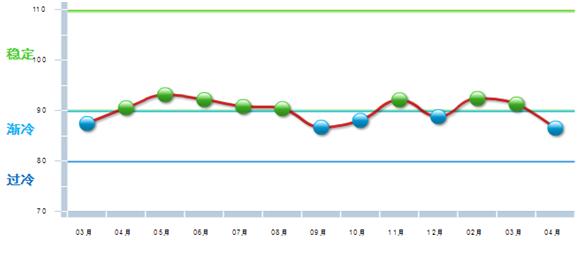饮料行业景气指数一年以来在稳定区间及渐冷区间波动,继2、3两月回升至稳定区间后,本月行业景气指数出现较大幅度下降至86.50,环比降4.82点。