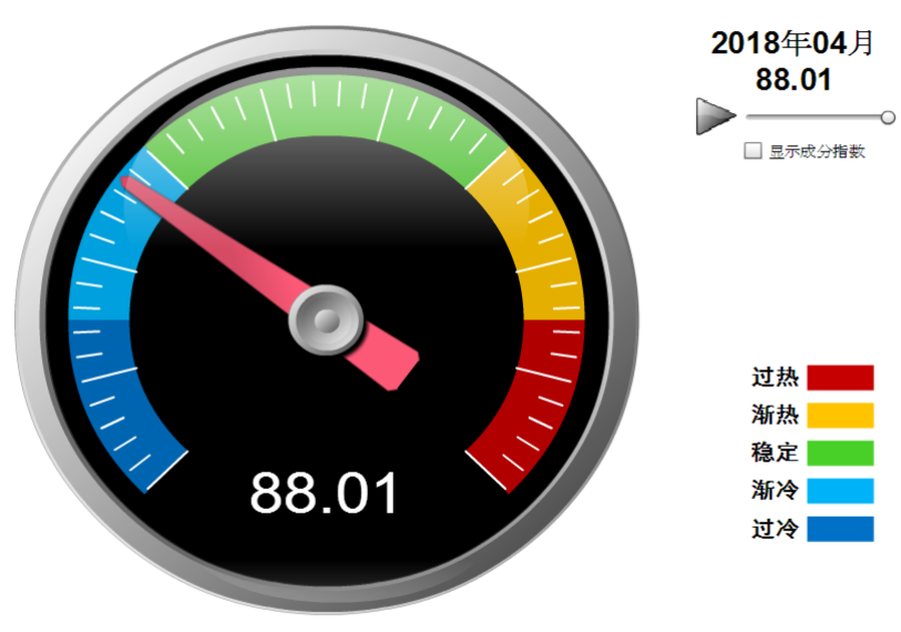 据中国轻工业经济运行及预测预警系统数据显示,2018年4月中国家具制造业景气指数为88.01,处在浅蓝色“渐冷”区间,较3月上升0.45点。