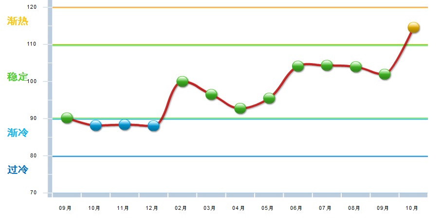 据中国轻工业经济运行及预测预警系统数据显示,2018年10月乳品制造业景气指数114.56,处在“渐热”区间,较9月上升12.58点。