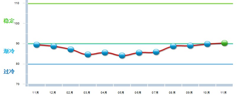 据中国轻工业经济运行及预测预警系统数据显示,2018年11月五金制品制造业景气指数90.27,处在“稳定”区间,较10月回升0.47点。