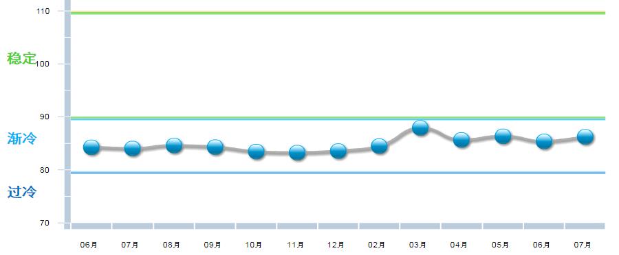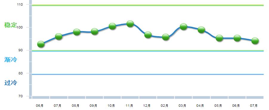 中国轻工业经济运行及预测预警系统数据显示:2019年,中轻景气指数继续在蓝色“趋冷”区间波动,7月中轻景气指数为87.11,较6月回升0.2点,较去年同月下降1.13点。