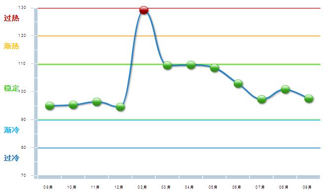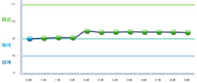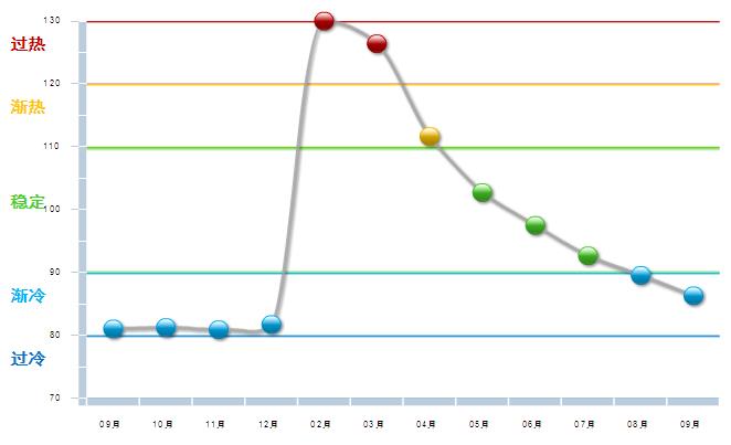 4个分项指数均较上年同月有较大幅上升,环比上月均有下降; 利润持续承压,利润指数已跌入“渐冷”区间。其中:营业收入景气指数94.97,位于“稳定”区间,环比下降1.74点,同比上升16.07点;利润景气指数86.30,位于“渐冷”区间,环比下降3.24点,同比上升5.27点;出口景气指数97.55,位于“稳定”区间,环比下降3.28点,同比上升2.58点;资产景气指数93.65,位于“稳定”区间,环比下降0.23点,同比上升3.67点。