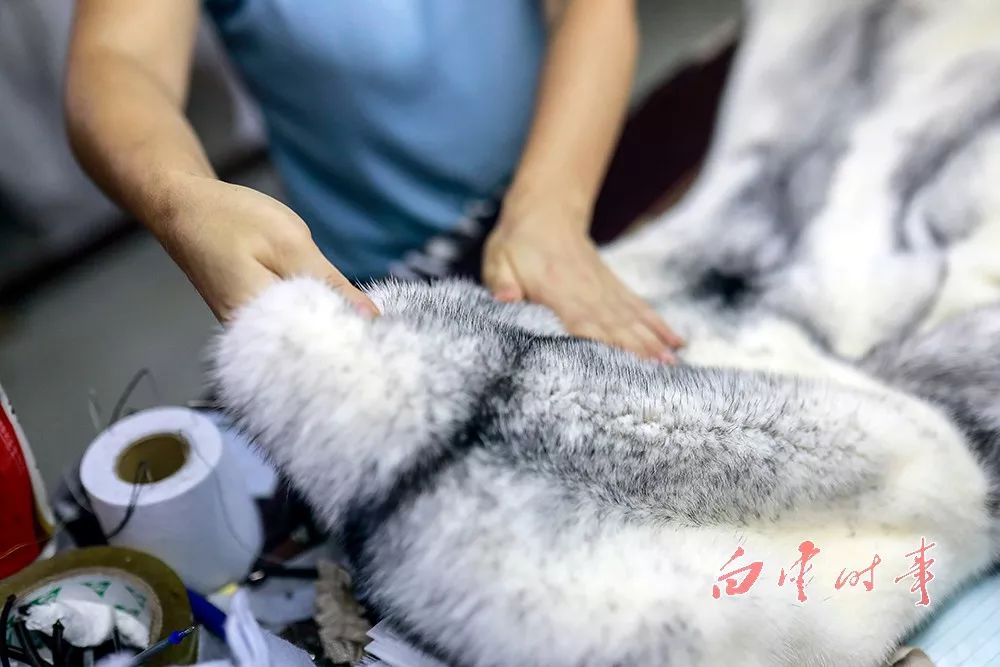 上世纪90年代,皮草加工家庭作坊在长腰岭村遍地开花,他们从碎料拼接毛条、衣领开始,逐步发展到缝制围巾、披肩、成衣,甚至整皮加工。“当年市场很火爆,靠近火车站的流花宾馆白马皮草城、金马皮草广场的首层,缤缤广场3-5层,全部都是经营皮草时装的档口,长腰岭村人也开始自主销售,一个小小的皮草档口在当年能有十二三万的收入。”提及当年的盛况,区裘皮协会党支部书记兼副会长林福坤仍记忆犹新。