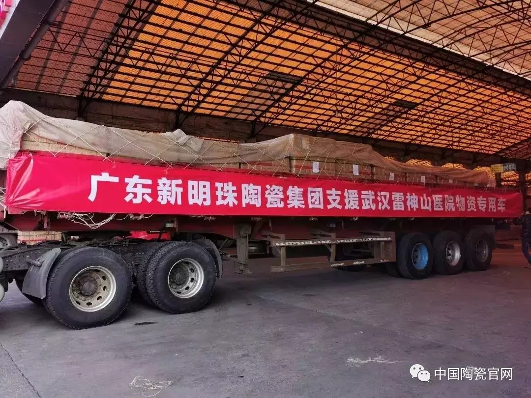 1月30日,两辆满载着爱心物资的大货车驶出新明珠三水园区,驶向抗击新型肺炎疫情第一线:武汉雷神山医院应急工程建设项目工地!2月2日早上,新明珠陶瓷集团第二批支援物资从三水园区火速发出!该批物资仍将用于武汉雷神山医院项目建设。