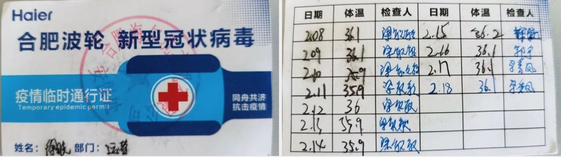 园区为供应商每位员工发放疫情期间通行证,持通行证方可进入园区,登记体温信息。一人一卡,减少排队聚集时间。