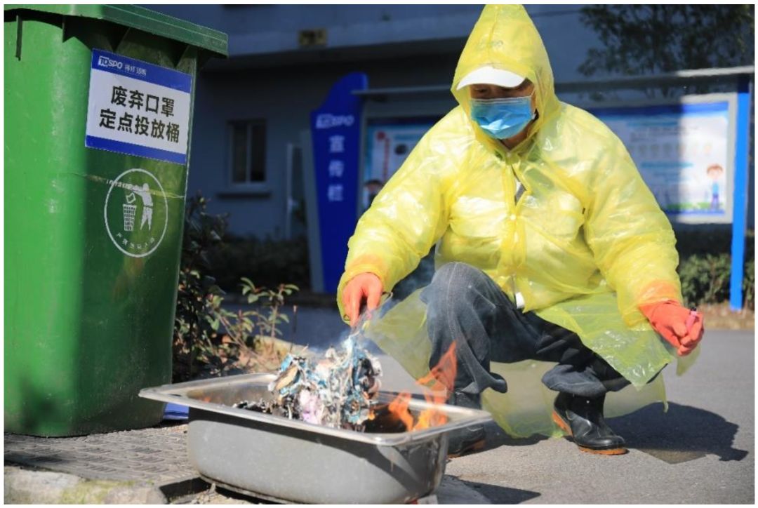 设置废弃口罩专用垃圾桶,并统一焚烧处理,切断病毒传播途径