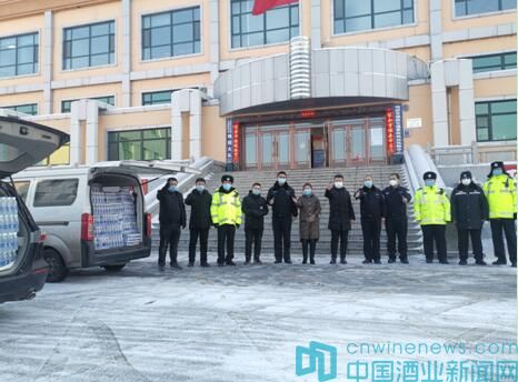 酒厂组织党员干部向鸡西市鸡冠区防疫一线应急指挥部、公安干警、社区以及交警支队捐赠世纪梦瓶装水700余箱。