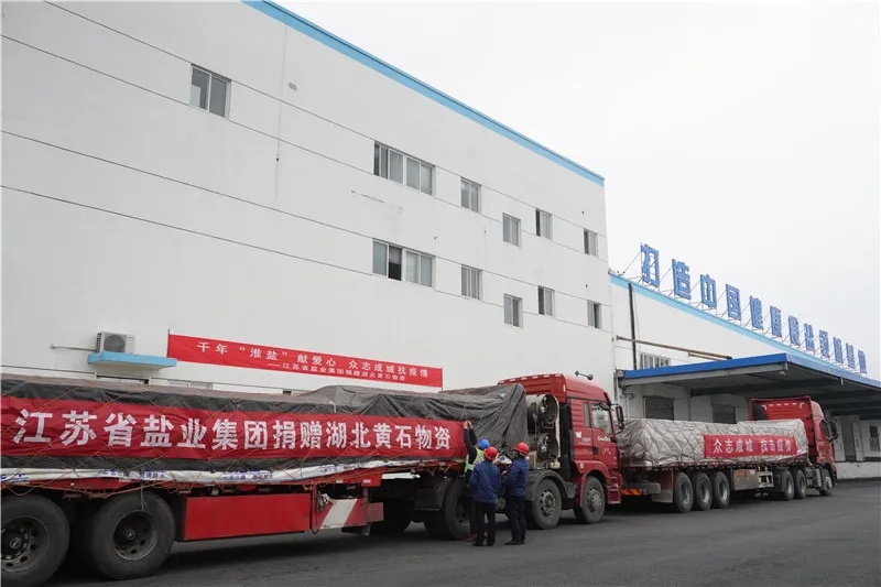 2月25日下午,两辆车身悬挂着“江苏省盐业集团捐赠湖北黄石物资”“众志成城 抗击疫情”字样横幅的卡车缓缓启动,满载50吨优质“淮盐”从苏盐井神股份公司启程,奔赴湖北黄石。