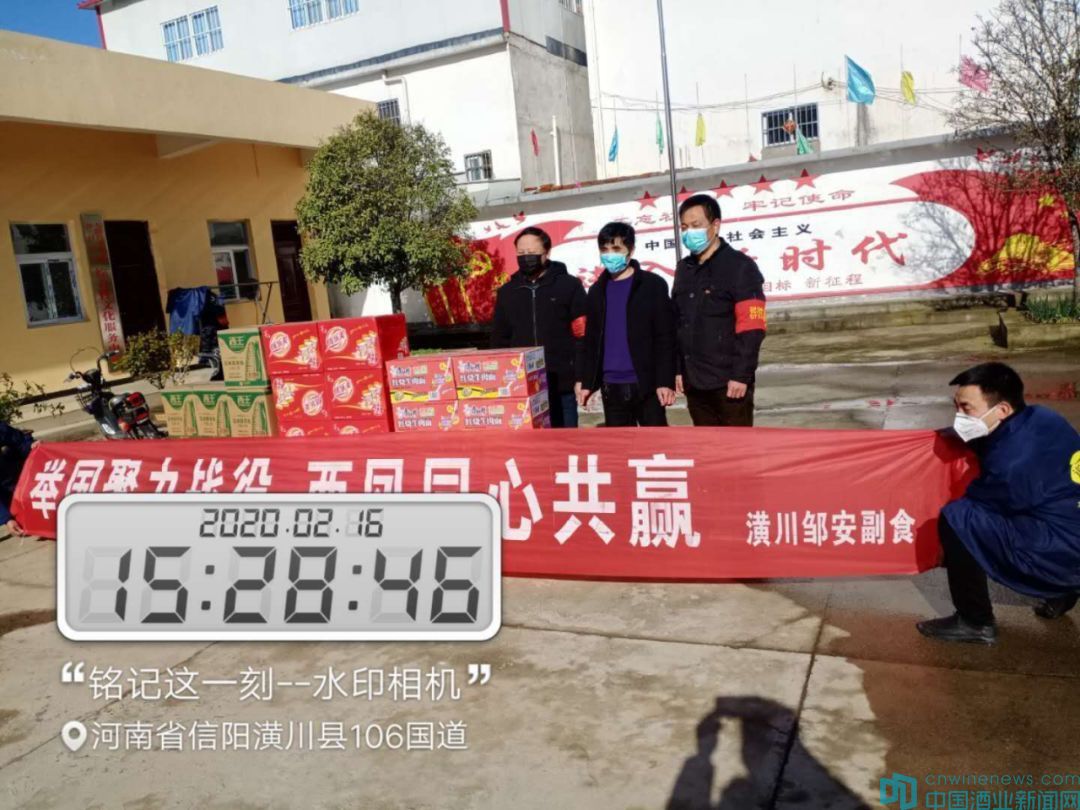216日,又有信阳市潢川县邹安副食店,沁阳市万隆商行等经销商向坚守在抗击疫情一线的潢川县交警大队,沁阳市向西镇政府和西万镇政府防疫点等单位持续组织慰问捐赠爱心活动。连日来参与慰问活动的客户已五十余家,慰问捐助一线抗疫单位100余家,慰问受众人次达到5000人次以上。