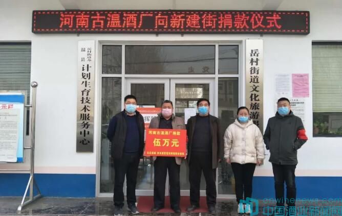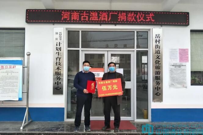 河南古温酒厂向温县岳村街道办事处捐款5万元。
