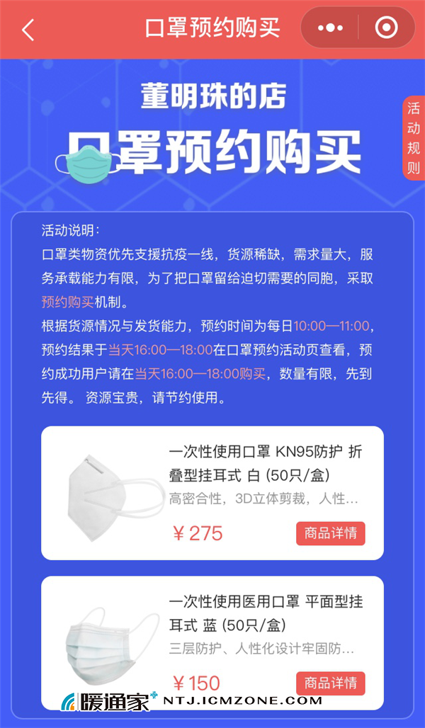 为最大限度满足口罩需求,格力口罩采用预约购买的方式售卖,每天10:00—11:00消费者可在格力官方商城“董明珠的店”预约,预约成功后16:00—18:00之内支付购买,每人每天限购1盒。