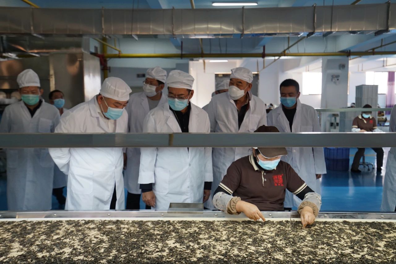视察组首先查看陈升茶业疫情防控工作,随后走进生产车间,具体了解。