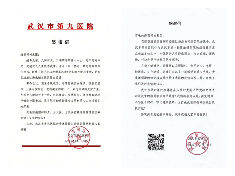 寒冬已过,迎来春暖花开,众志成城,筑起爱心防线。武汉疫区一线防护人员感谢来自“椰树的温暖”。