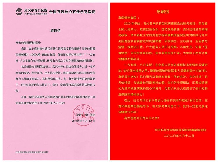 继椰树集团捐赠第三批、第四批植物蛋白饮料椰树牌椰汁送达武汉一线人员后,近日,椰树集团持续将椰树牌椰汁送达武汉一线人员手上,为他们保持健康状态投入战“疫”,持续提供营养保障。