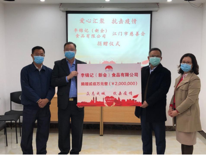 自新冠肺炎疫情发生以来,李锦记全力驰援抗疫,第一时间了解抗疫前线的各类需求,并积极筹措相关资源。2月4日,李锦记通过广东江门慈善会向江门市中心医院捐款人民币200万元支持抗疫;随后启动第二轮捐助,向江门新会红十字会捐赠2360箱白醋支援呼吸道疾病预防工作;3月以来,李锦记开启第三轮捐助,向广东江门市两所新冠肺炎定点医院、新会区各医院及各镇街卫生院抗疫一线医护人员、新会区圭峰会城社区一线防疫人员、以及通过江门市妇联向江门市赴鄂医疗队及前线医护人员家庭捐赠总数超过14000份酱料产品。