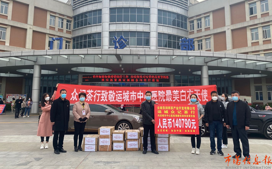 该公司负责人表示众记是运城市唯一一家代理贡润祥茶膏的茶行,正是因为他们的代理和运城茶业协会的支持,才有机会将这份爱心奉献到运城。疫情爆发后,从武汉到全国,无数的医务人员成为了中国最美“逆行者”,坚守、奋斗在疫情阻击战一线。目前,疫情进入防治关键时期,后续将持续在全国各地举办爱心捐赠公益活动,以公益行动助力抗“疫”,以更多实际行动支援疫情防控工作。