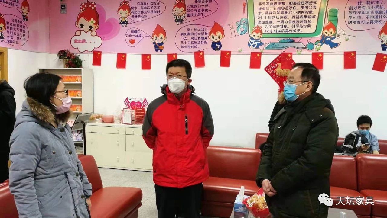 为坚决打赢疫情防控阻击战,缓解北京市血库用血压力,践行首都国企社会责任,在金隅集团统一指导下,天坛家具积极响应,组织开展无偿献血活动,这不仅是一项利国、利民的善举,也是身为首都国企应尽的义务。