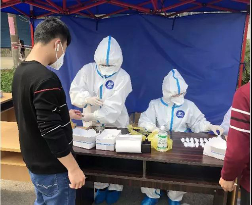 为最大限度减少复工人员感染新型冠状病毒风险,切实保障广大员工的生命安全和身体健康,在碧桂园集团以及高新区政府的协调和帮助下,公司请来了高新区人民医院医疗团队为返岗员工提供核酸筛查快速检测服务,确保“早发现、早报告、早隔离、早治疗”,做到“外防输入、内防传播”。