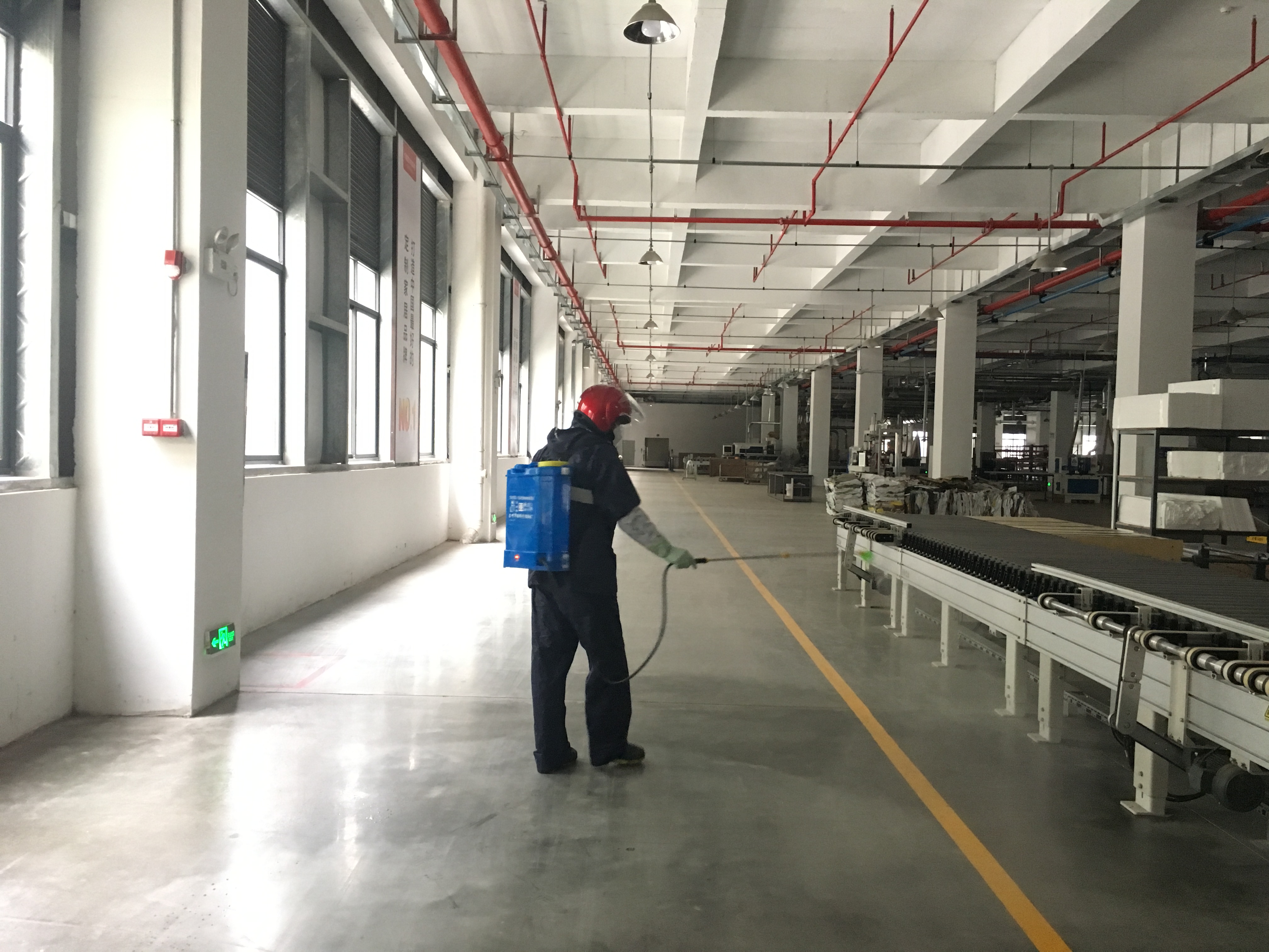 图:车间、生活区每个地方都进行消毒杀菌,保证员工身体健康 未雨绸缪,做实做细迎复工
