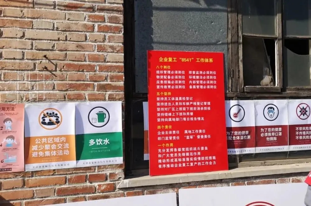 复工前,该企业及时完善疫情防控工作提示,成立工作小组,起草制定了应急预案、相关管理办法等文件;全面开展摸底调查,了解职工在休假期间的接触史;对厂区及设备进行了全方位的安全检查和消毒,还通过微信及时组织职工安全教育及培训。