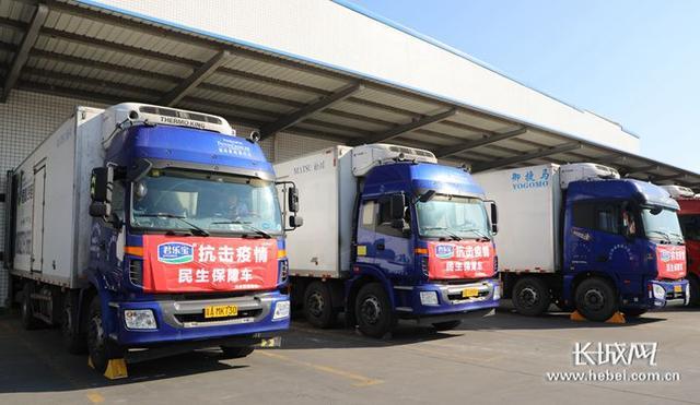 装满乳制品的君乐宝民生保障车整装待发