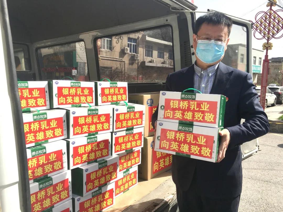 319日上午,西安银桥乳业集团第一时间为援鄂医疗队送来60箱高品质的银桥牛奶,表达对这些逆行而上的最美白衣天使们的敬意和感谢!