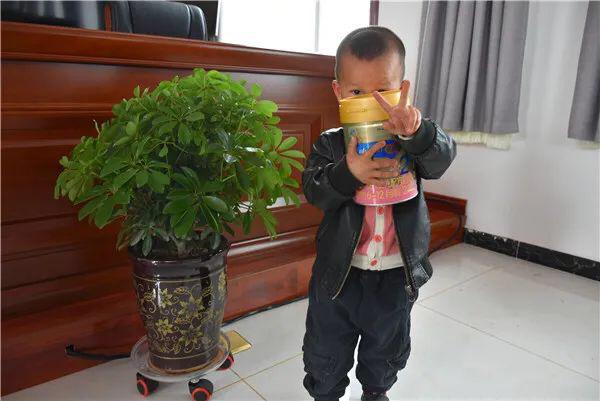 小朋友领到了爱心奶粉