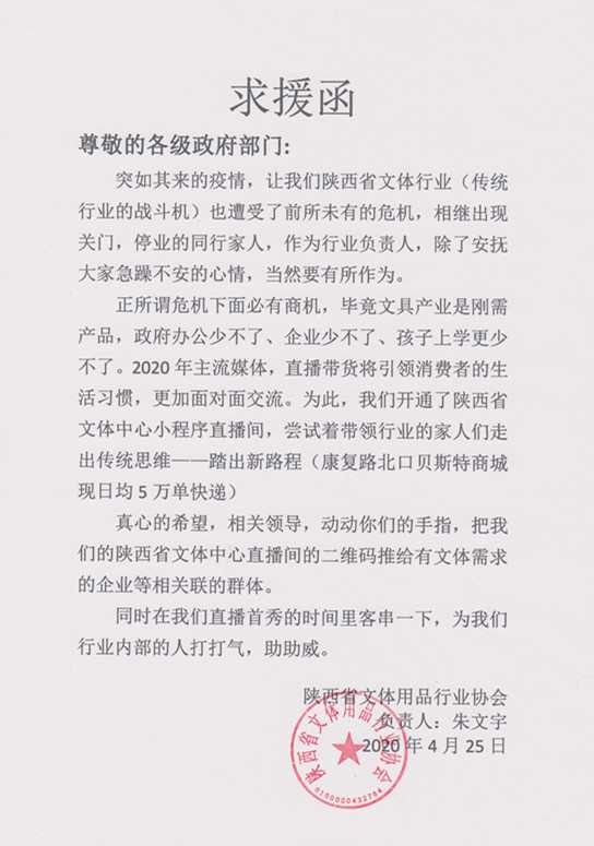 作为陕西省文体用品行业协会主要负责人,我和同仁们商量,当前采取了以下解困对策: