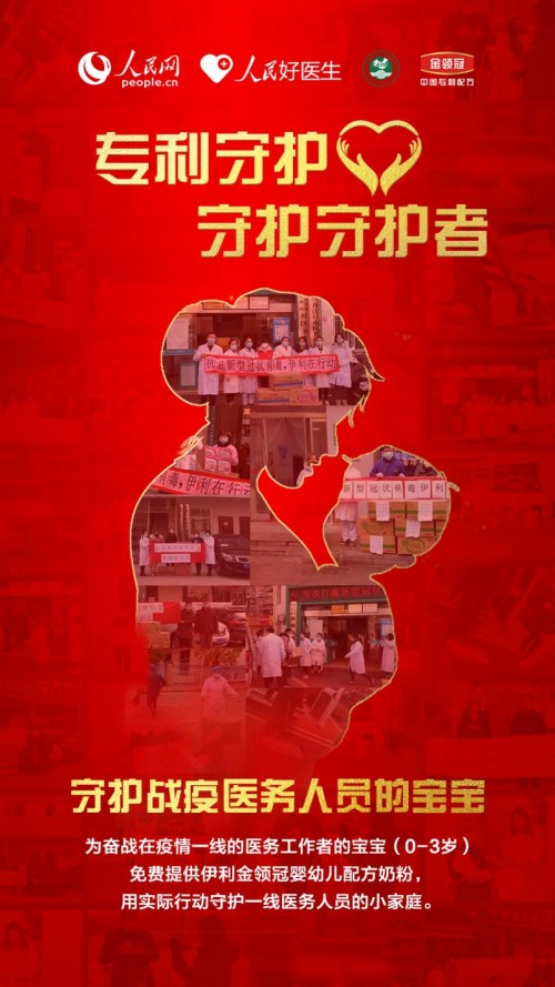 伊利金领冠联合人民网·人民好医生、中国社会工作联合会社区工作委员会,共同发起“专利守护❤守护守护者”公益活动,为奋战在疫情一线的医护工作者的孩子(0~3岁)免费提供伊利金领冠婴幼儿配方奶粉,用实际行动守护一线医护人员的小家庭,助力医护工作者们安心战疫。