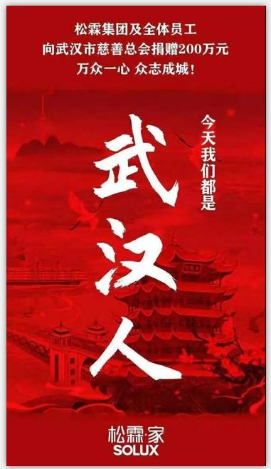 1月27日,松霖集团向武汉市慈善总会捐款200万元,用于抗击新型冠状肺炎病毒。