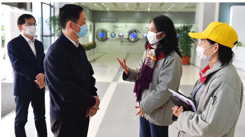 周晓萍董事长首先向张春福书记介绍了星宇复工复产的相关情况,并对市、区各级领导在疫情防控期间给予星宇的关怀和帮助表达了感谢。复工复产期间,星宇股份严格遵循市委市政府的要求进行科学的疫情防控和部署,对符合要求已返岗的员工提供每日必须的消毒防护物资及防疫知识培训,建立“一人一档”制度,对员工每日的个人身体状况及通勤方式进行登记记录;对已具备返岗条件的员工,要求其在三甲及以上医院体检合格后再上岗,员工的体检费用由公司承担。截至目前,星宇的人员到岗率及产能正逐步提升。