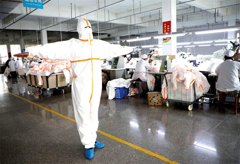 2月23日,记者在鸿润集团生产车间看到,一套套医用防护服正在工人们的手中成型。鸿润集团股份有限公司总裁夏吉国说:“这些防护服经过专门消毒后,就进入国家统一采购平台,运往武汉,供抗疫一线医护人员使用。” 详细
