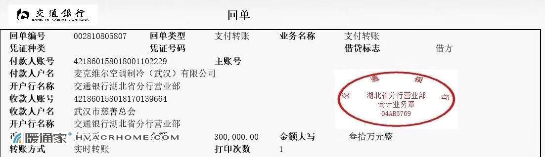 作为暖通空调行业的标杆品牌,2020年1月28日,麦克维尔中国向武汉慈善总会捐赠30万元人民币,支持抗击新型冠状病毒感染的肺炎疫情,用于购买急需各类医药、消毒用品、口罩等物资。 详细