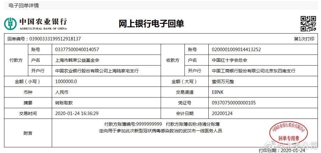 抗击疫情 | 上美集团韩束基金会向中国红十字会完成捐赠人民币壹佰万元整