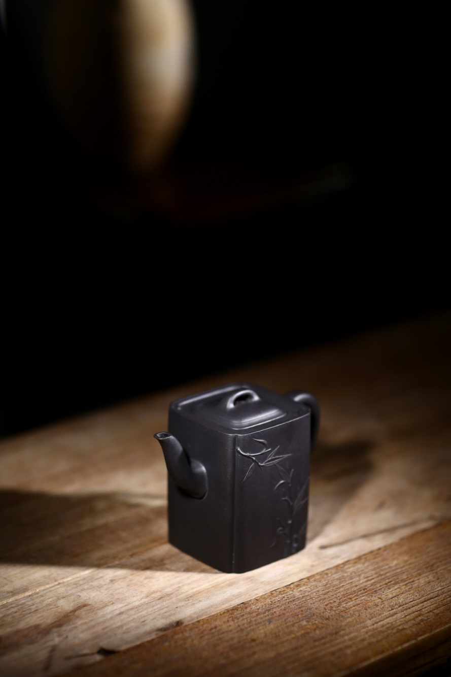 竹是中国文化的经典审美意象,以竹入壶,一以借形,二以通神。从造型上看,竹的身姿挺拔,竹节分明,骨意嶙峋。《竹报平安》壶用独特的盖面处理生动地表现竹节断面,壶身的竹叶姿态多样,欹正仰俯、阴阳向背各有不同,正叶、反叶、折叶,转叶,叠叶……不一而足,展现出纯熟高妙的贴塑工艺。作品借“竹报平安”的美好意头祝愿早日扫除疫情,人民平安幸福。