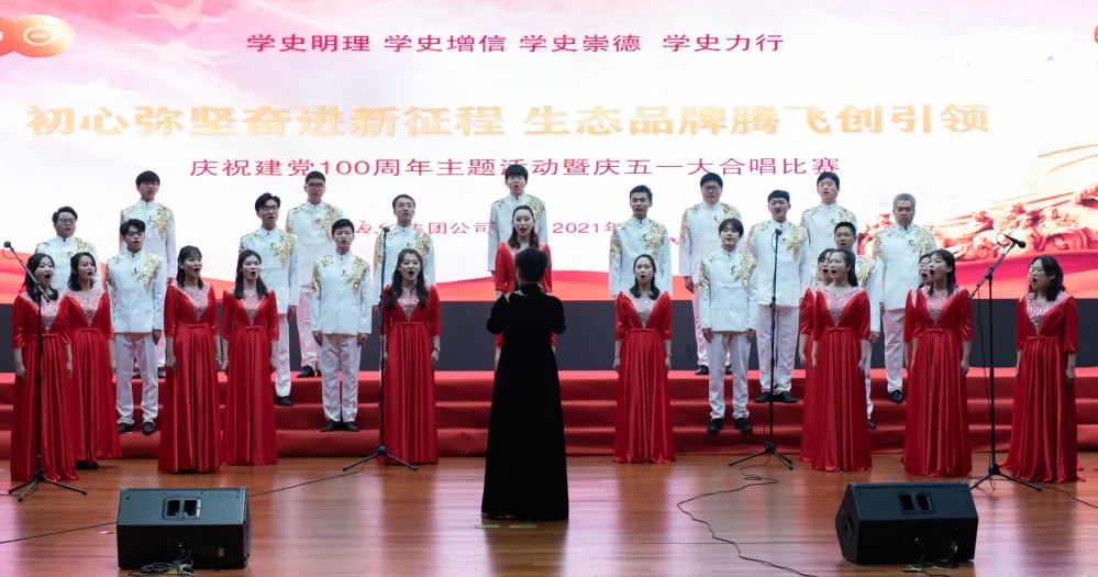 我们在时代浪潮里,春风催人奋进,我们在灿烂阳光下,唱响时代主旋律,展现中国共产党百年历史的丰功伟绩。